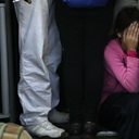 (Photo: A girl covers her face as hundreds of migrants try to board a train at the Keleti Railway Station in Budapest, Hungary today. Credit: AP Photo/Petr David Josek)