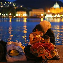 (PHOTO: Refugees rest around Lesbos harbor waiting to get on ferries to Greece. CREDIT: Getty Images.)