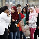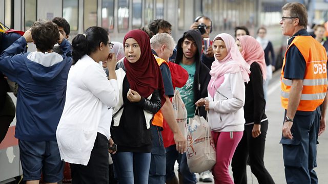 (Credit: Refugees board a train heading to Germany at the western railway station in Vienna. Credit: Dieter Nagl AFP/Getty Images)