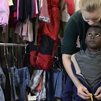 (Photo: A helper puts a jacket at a refugee boy at a collection centre for clothes for migratnts in Munich. Credit: AFP)