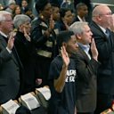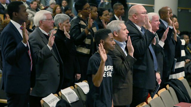 (Photo: Members of a 16 member Ferguson Commission are sworn in by Missouri Governor Jay Nixon, Credit: Getty Images)