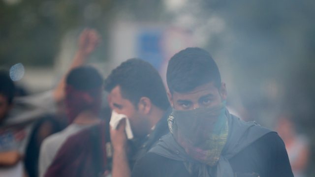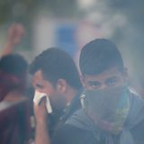 (PHOTO: After clashes with police, migrants settle down for the night in Horgos, Serbia. CREDIT: Getty Images.)