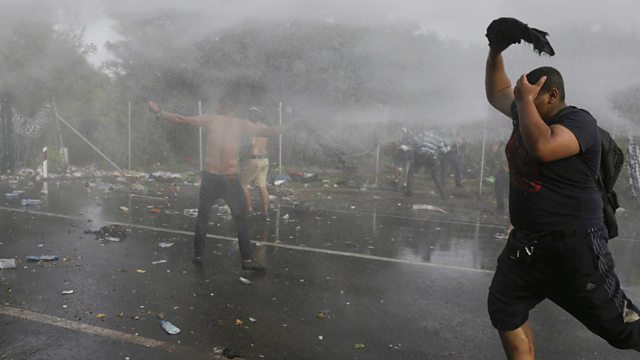Hungarian police use tear-gas on migrants at border with Serbia, UN issues report on Sri Lanka war crimes, Will the world's two largest breweries merge ? (Photo: Migrants at Hungary-Serbia border. Credit: Getty)