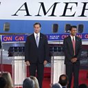 (Photo: Republican US presidential candidates Pataki, Santorum, Jindal and Graham on stage for the debate. Credit: Reuters)
