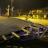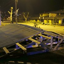 (Photo: The roof of a shop is pictured on the ground after it was dislodged by waves in Concon city. Credit: Reuters)