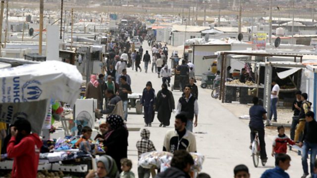 (Photo: Syrian refugees walk past a makeshift market in the Zaatari refugee camp, Credit: AFP/Getty Images)