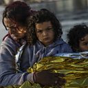 (Picture: A Syrian family sit on the dock side after being escorted into the harbour by the Greek Coastguard who found them drifting offshore. Credit: Dan Kitwood/Getty Images)