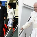 (Photo: Chinese President Xi Jinping and first lady Peng Liyuan arrive in the United States for a one week visit. (L) Credit: AFP. Pope Francis steps off an airplane after arriving from Cuba in the United States (R). Credit: Getty Images)