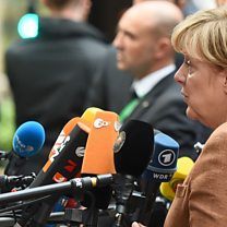 (PHOTO: German Chancellor Angela Merkel answers questions before the EU emergency summit on migration. CREDIT: Getty Images)