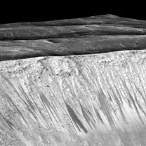 (Photo: Streaks showing liquid water on Mars. Credit: NASA)