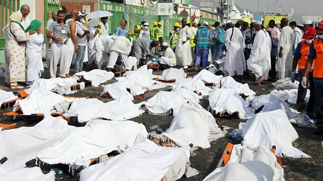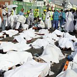 (Photo: Saudi emergency personnel near bodies of Hajj pilgrims. Credit: Getty Images)