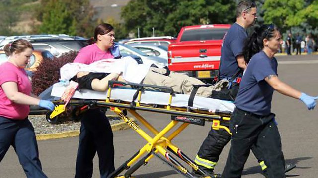 (Photo: Medical staff help an injured person after shooting incident at Umpqua Community College in Roseburg, Oregon, US. Credit: Reuters)