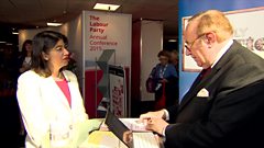 Adam Fleming took the plastic bin and balls to see what members thought about the party's policy on nuclear weapons.