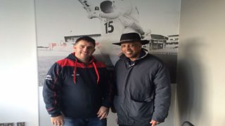 Former Zimbabwe cricketer Henry Olonga sings with Alison Mitchell