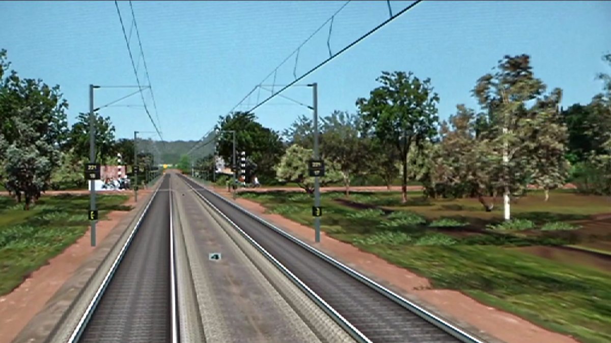 At the Zonal Railway Training Institute in Bhusawal, Robert Llewellyn uses a simulator to see if he has the skills required to be a driver.