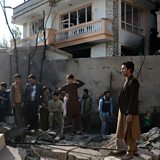 (Photo: Afghan residents gather outside a damaged building after a Taliban attack in Kabul on October 6, 2015. Credit: Noorullah Shirzada/AFP/Getty Images)