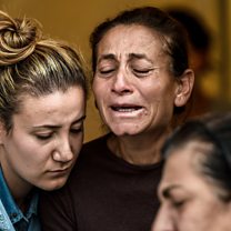 (Photo: A family mourns in an area allocated for families outside a forensic morgue, as they wait for the body of a relative, Ankara, 2015. Credit: AFP)