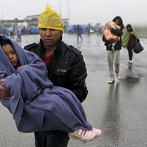 (Photo: Migrants caught in the rain on the Croatia-Slovenia border. Credit:Srdjan Zivulovic/Reuters)
