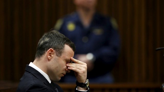 (Picture: South African Olympic and Paralympic sprinter Oscar Pistorius sits in the dock during his trial in the North Gauteng High Court in Pretoria. Credit: REUTERS/Mike Hutchings)
