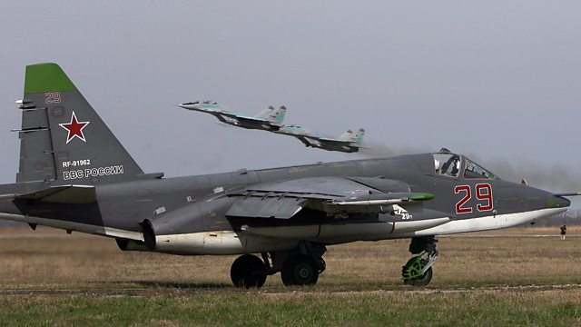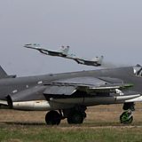 (Photo: Russian SU 25 SM ground attack aircraft (ground) and MIG 29 jet fighters (taking off) attend a training session. Credit: Sergey Venyavsky /AFP/Getty Images)