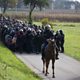(Photo: Police ride in front of migrants after they crossed from Croatia into Slovenia. Credit: Associated Press)