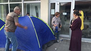 The family wait for their papers in Serbia but the lack of sleep is beginning to hit them