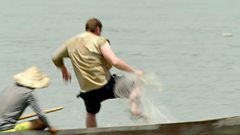 The anglers get to grips with fishing the way the local people do in their second fishing challenge in Laos. They'll have to master the technique of throwing cast nets into the shallow water whilst balancing on small boats, which is much easier said than done.