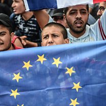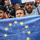 (Photo: A migrant holds an European Union flag at Istanbul's Esenler Bus Terminal. Credit: OZAN KOSE/AFP/Getty Images)