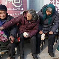(Photo: An elderly couple feed their great-grandson in Zhejiang province, China. Credit: Reuters)