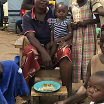 (Photo: A displaced family having lunch at a refugee camp in Bangui. Credit: Huong Ly / BBC )