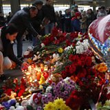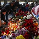 (Photo: People lay flowers, toys and light candles at an entrance of Pulkovo airport outside St.Petersburg, Russia, during a day of national mourning for the plane crash victims. Credit: AP)