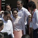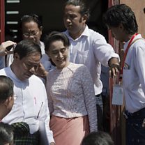 (Photo: Myanmar opposition leader Aung San Suu Kyi leaves the headquarters of the National League of Democracy (NLD). Credit: AFP/Getty Images)