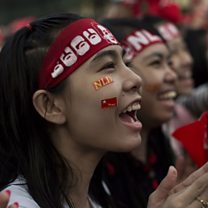 (Photo: Supporters of Myanmar opposition leader Aung San Suu Kyi outside the National League of Democracy (NLD) headquarters in Yangon. Credit: AFP Photo/Getty Images.)