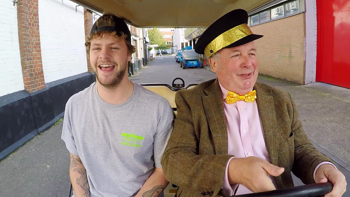 Jay McGuiness and Christopher Biggins "rave up" in Biggins' Boogie Buggy.