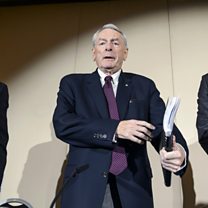 (Photo: Barrister Richard McLaren, chairman of the WADA independent commission Richard W Pound, and Head of Department Cybercrime with Bavarian Landeskriminalamt (LKA) Guenter Younger. Credit: AFP/Getty Images)