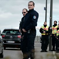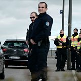 (Photo: German and French police officers stand guard at bridge border. Credit: AFP/Frederick Florin/Getty Images)