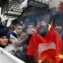 (Photo: Russians burn a Turkish flag during a rally in front of the Turkish embassy in Moscow, Russia. Credit: EPA)