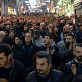 (People in Istanbul protesting at the killing of lawyer Tahir Elci. Credit: AP)