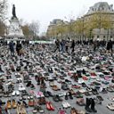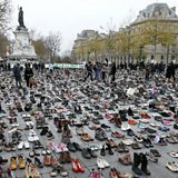 (Photo: Thousands of pairs of shoes are left in the Place de la Republique in Paris on the eve of the UN Climate Change Summit. Credit: EPA)
