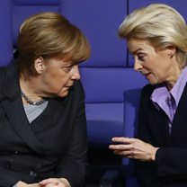 IS releases video showing its tactics, China pledges $60 Billion for Africa, Paris cafe reopens after November terror attack (Photo: German Chancellor Merkel and Defence Minister Von der Leyen in Parliament. Credit: Reuters)