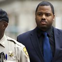 (Photo: Officer William Porter, standing trial over Freddie Gray's death, arrives in court in Baltimore. Credit: AP)