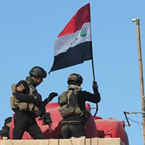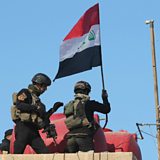 (Photo: Iraqi soldiers raise flag, credit: AFP/Getty)
