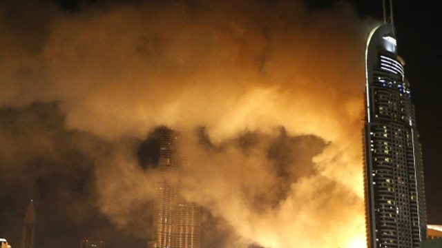 Heightened security at New Year events in US and Europe, BBC targeted in web attack. (PHOTO: Smoke billows from the Address Downtown Hotel. Credit: AFP)
