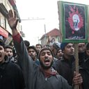 (Photo: Kashmiri Shiite Muslims, carrying a placard with the portrait of Sheikh Nimr al-Nimr, shout slogans during a protest in Srinagar, Indian-controlled Kashmir. Credit: AP)