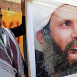 (photo: Demonstrator holding Nimr-al-Nimr picture, Credit: AFP/Getty)