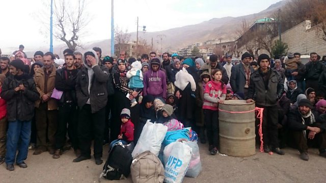 (Photo: Syrians waiting for aid convoy in Madaya town. Credit: Getty Images)
