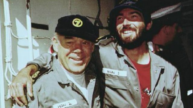 After hearing voices outside the yacht, he made his escape. "I thought if I hang about, I could get up to the surface in 20 minutes and see the stern of the HMS Adelaide making its way back to Australia."