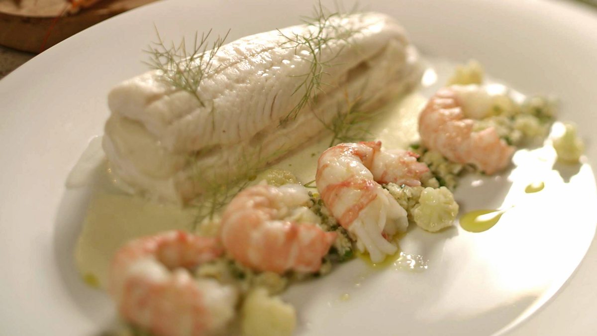 This super-impressive fish dish pairs delicate lemon sole with earthy cauliflower and sweet langoustines.