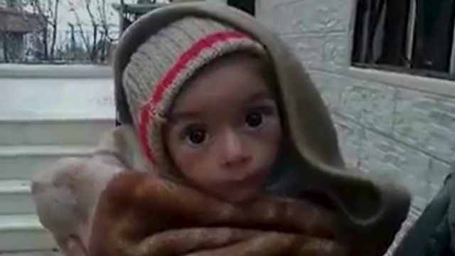 (Photo: A toddler is held up to the camera in this still image taken from video said to be shot in Madaya. Credit: Reuters)
