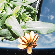 (Photo: Zinnia growing on board the International Space Station. Credit: NASA)
